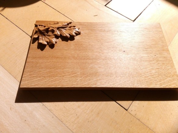Brotbrett mit Eichenblättern und Raupe, Eiche geölt, Baptiste Lorenzo Gass 2019